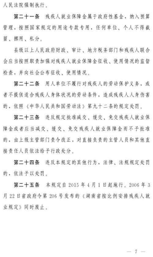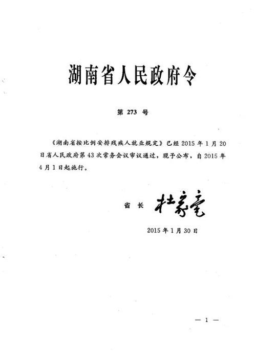 《湖南省按比例安排残疾人就业规定》